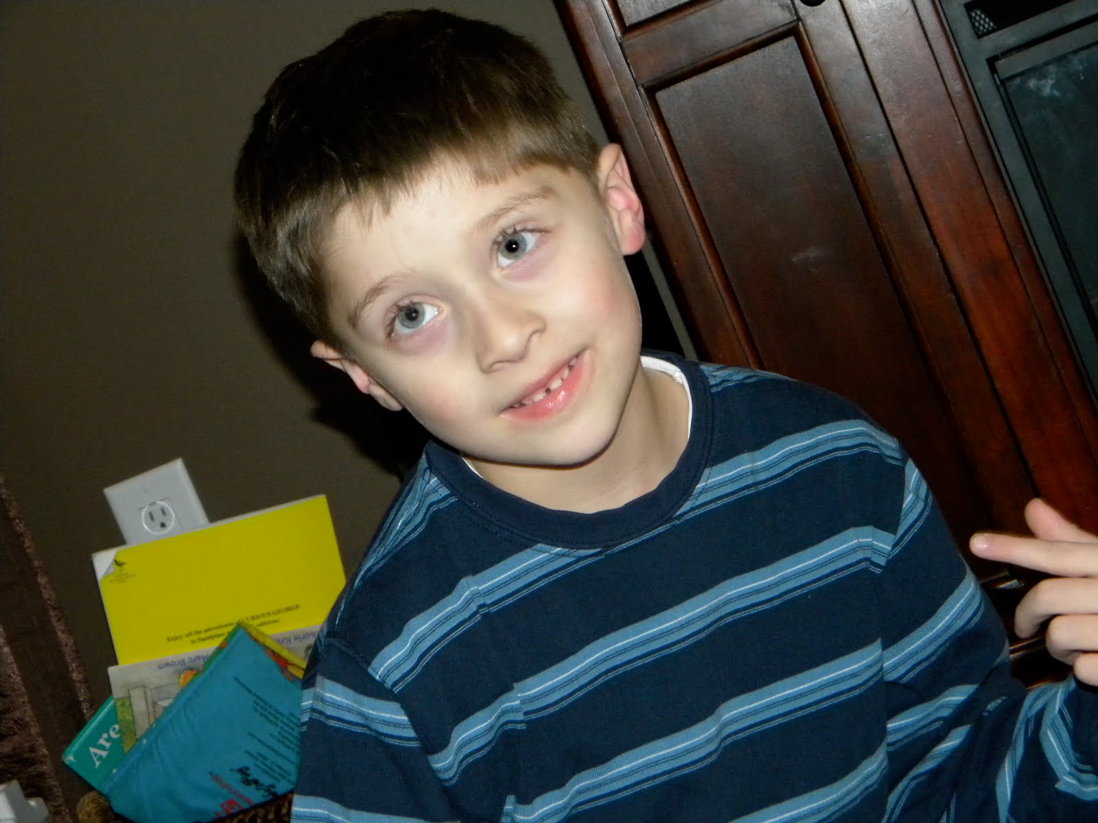 Spencer has loved trains since the moment he was able to play with them. We have more Thomas the Tank Engine movies than I care to admit; DVD and VHS. Spencer has a wooden train set, a plastic train set and an electric train set. I told you, the boy LOVES trains.
